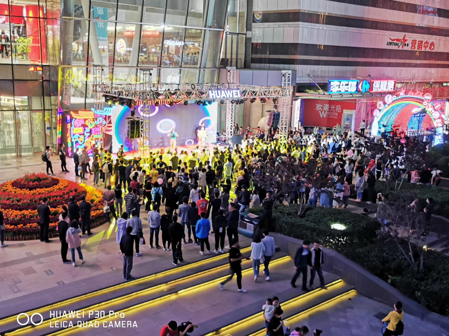 五一小長假期間,借力Shopping mall流量發聲,促進華為品牌推廣及銷售。攜手勒泰中心,登頂停機坪,帶來空中影像派對。影像、美酒、日落、星光、音樂等多種耀眼元素別樣碰撞,為每一位登頂的客戶帶來心靈和視覺的雙重震撼!同步在客群流量最大的商場主入口設置品牌展具及專場演出,相互輝映,彰顯華為品牌不俗實力。